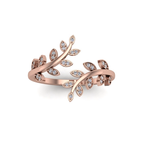 Sparkling diamonds in the shape of leaves decorate this exquisite rose gold ring, which has a delicate leafy design on both sides for a hint of organic beauty. Because of its adjustable fit and 14K rose gold construction, you may comfortably modify the ring's size by lightly touching the band. It is a sophisticated yet adaptable combination that works well for any setting.